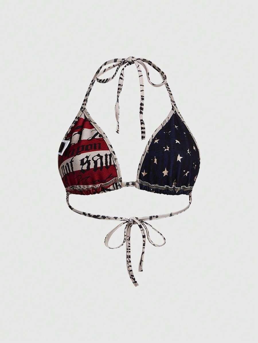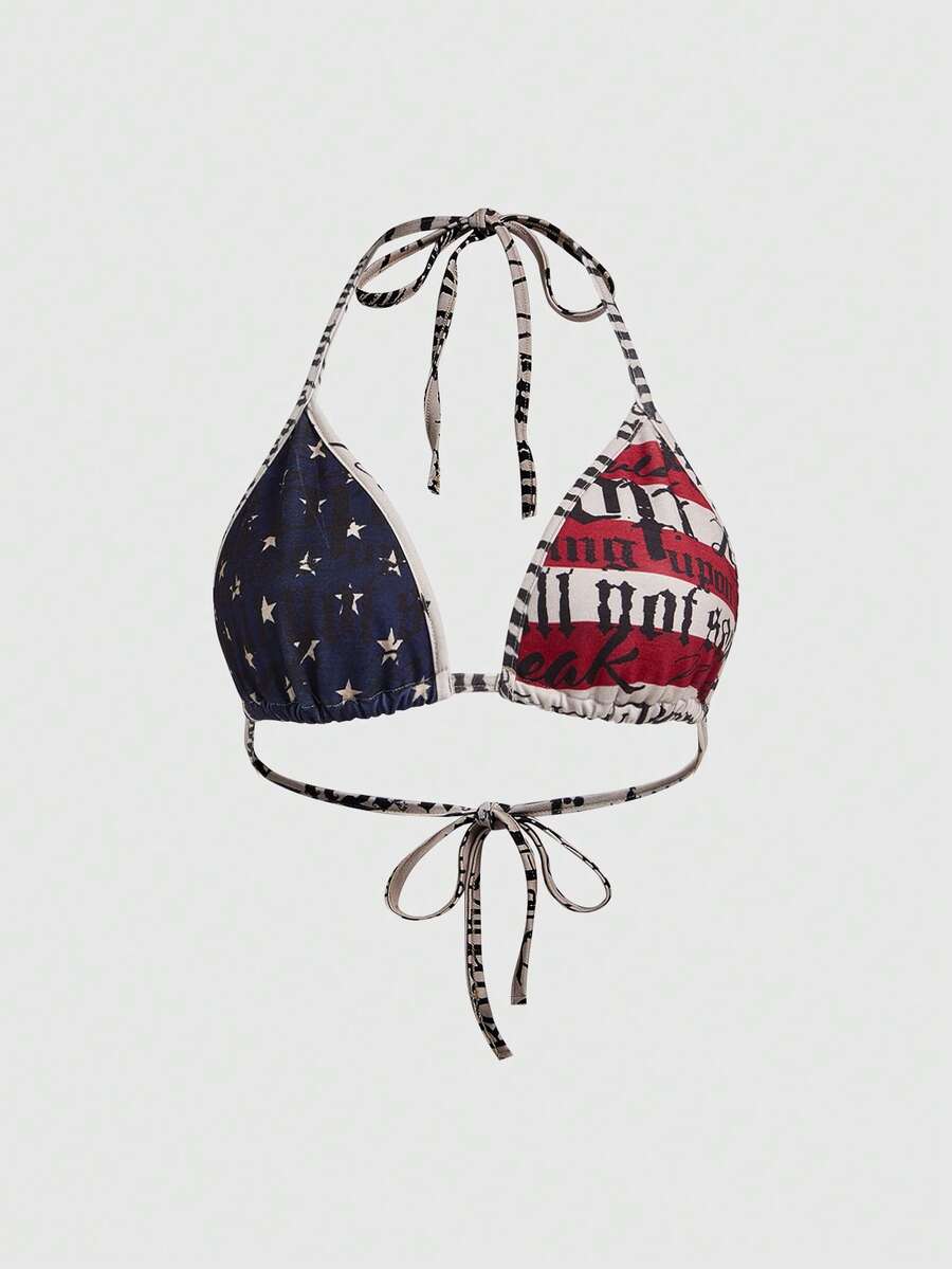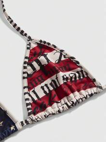 Grunge Punk Bikini con parte superior de triángulo con estampado de eslogan de bandera nacional, estilo sexy Y2K