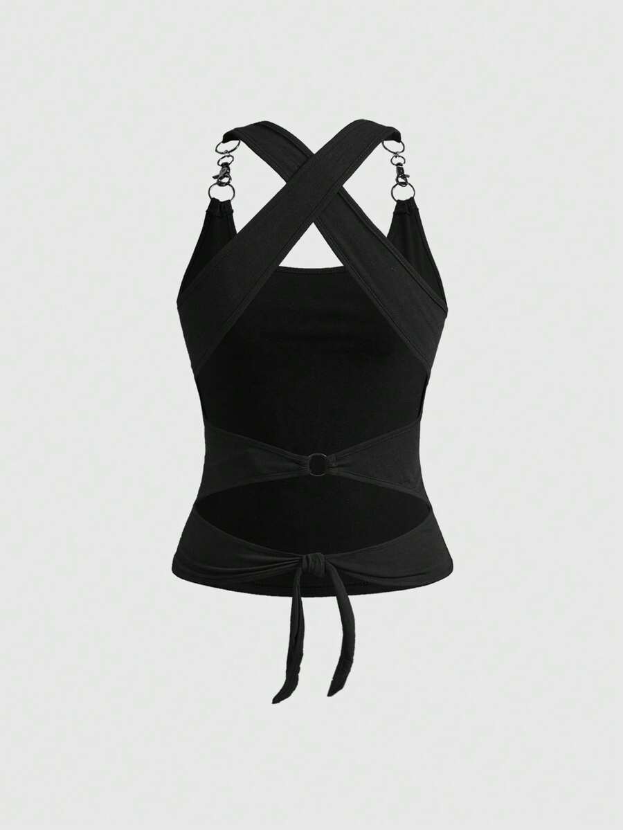 Grunge Punk Top ajustado de tirantes con diseño de lazo en el cuello en estilo Y2K sexy para mujeres
