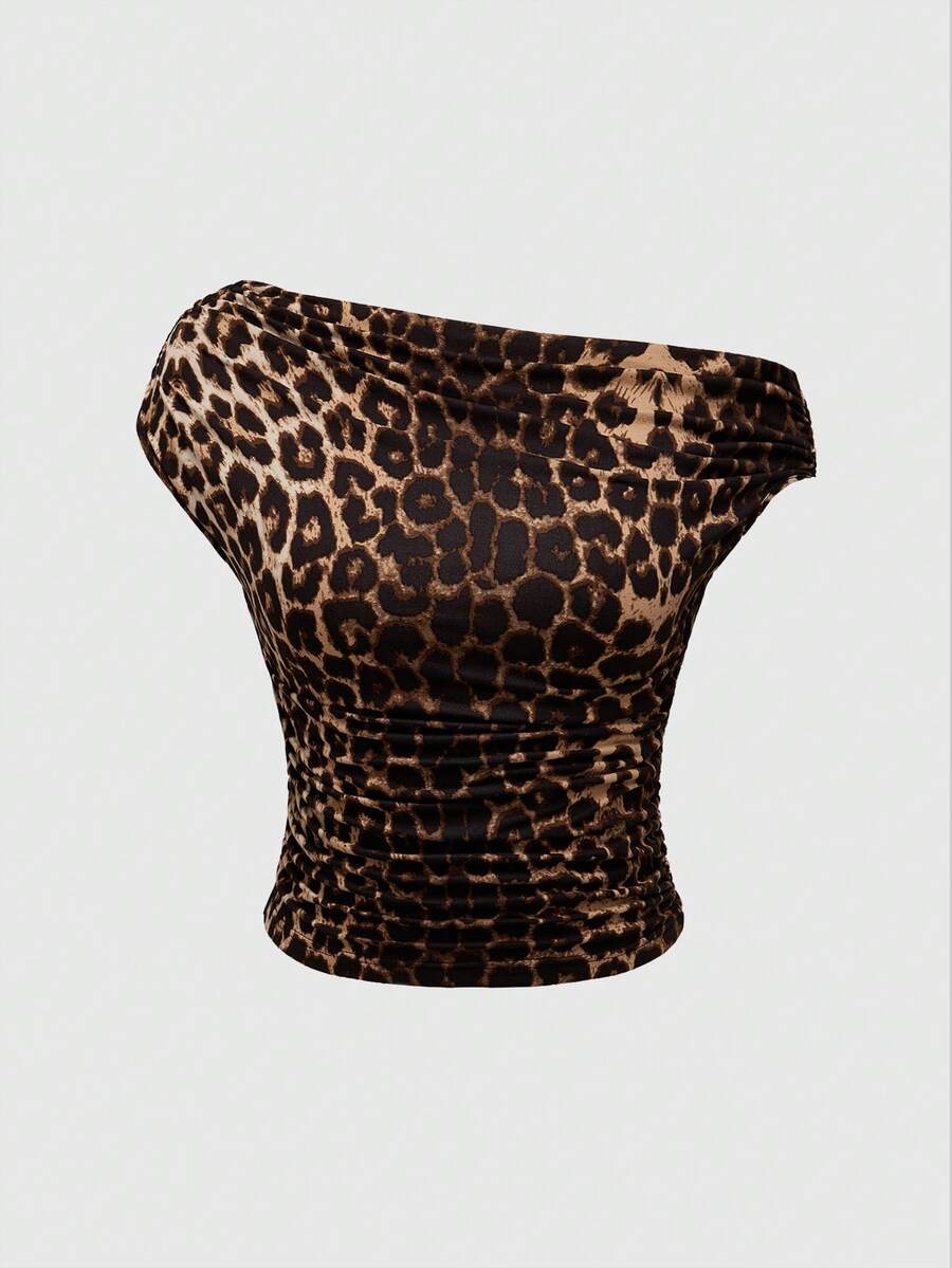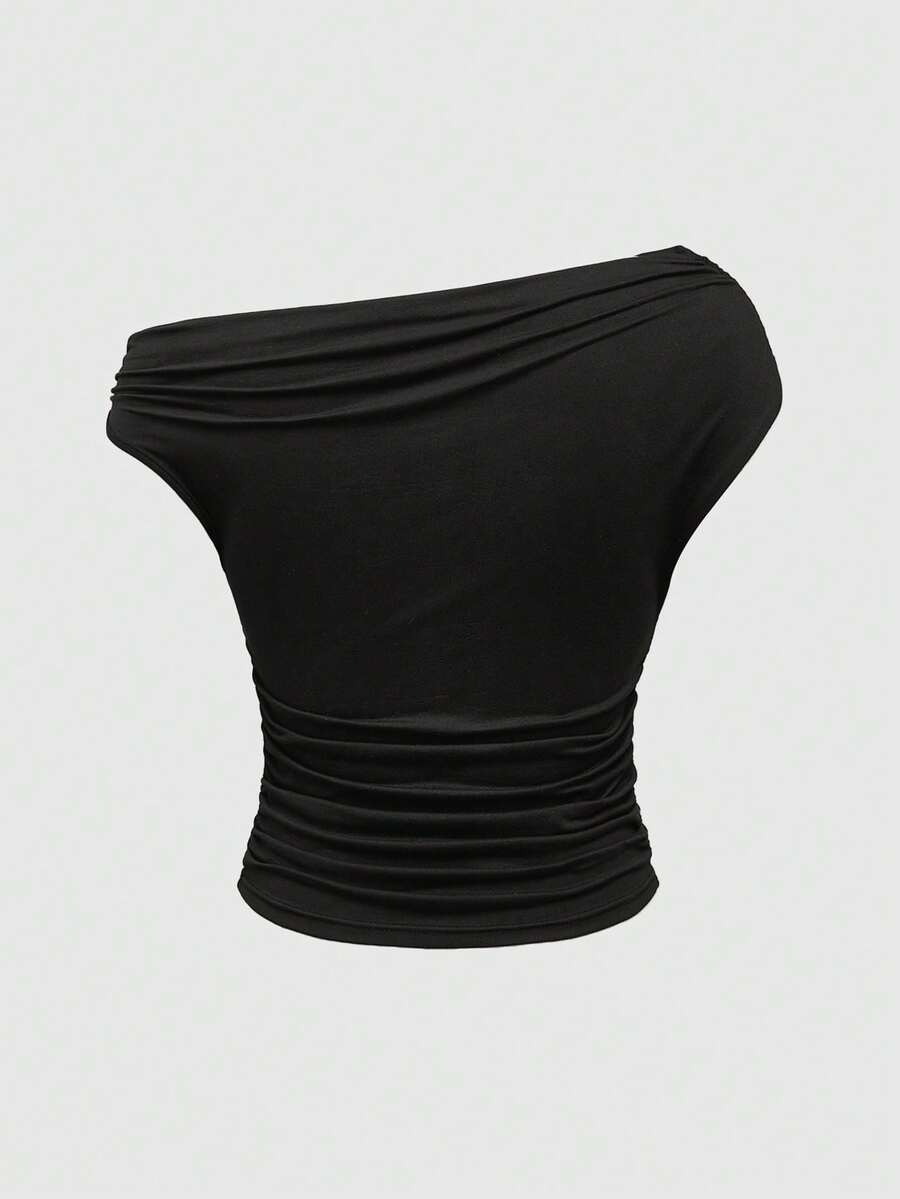Grunge Punk Camiseta de mujer de hombro asimétrico acanalada de estilo retro revival del milenio Shibuya Gyaru Y2K