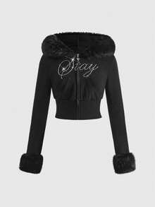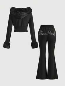 Grunge Punk Conjunto de 2 piezas de top corto y leggings con decoración de rhinestones en estilo Y2K