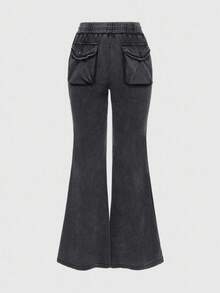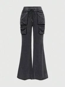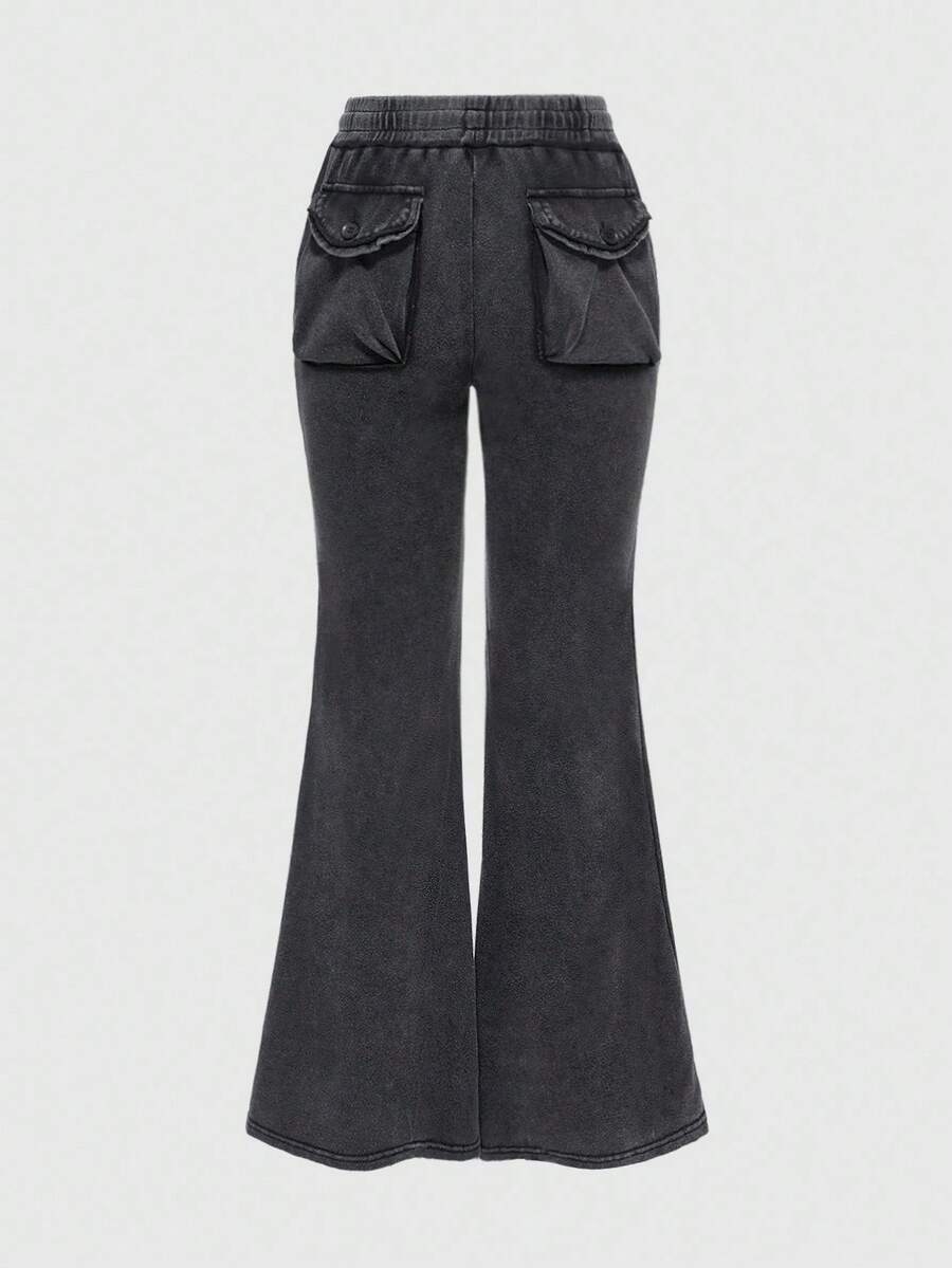 Grunge Punk Pantalón de chándal de talle súper bajo, lavado vintage, con decoración de bolsillo 3D y efecto esponjoso oversize, estilo Y2K