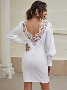 Vestidos Encaje en contraste Liso Elegante