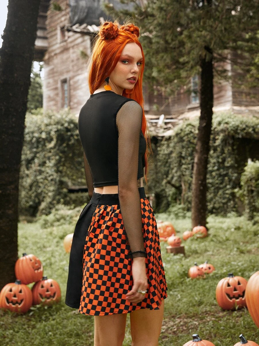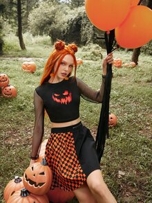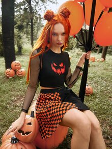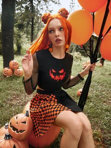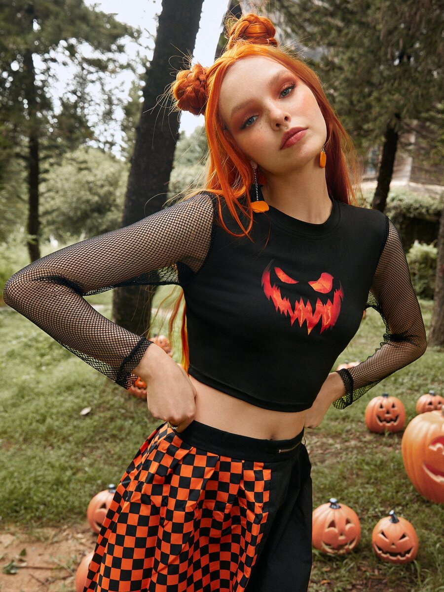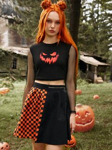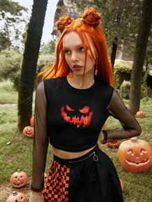 Gumgfx Top corto con estampado de halloween de malla en contraste