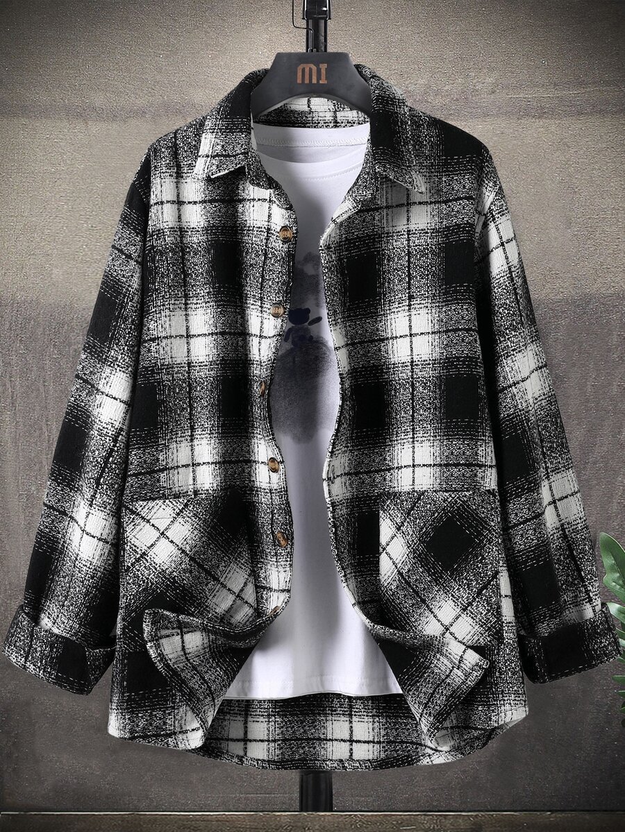 Hombres 1 pieza Cazadora con estampado de cuadros
