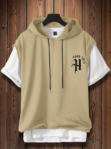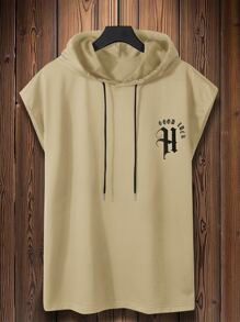Hombres 1 pieza Camiseta con estampado de slogan con capucha