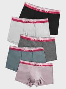 Hombres 5 piezas Calzoncillos boxer de cintura con cinta con letra