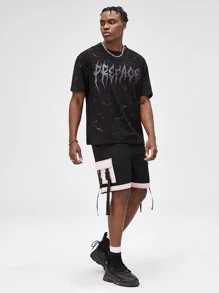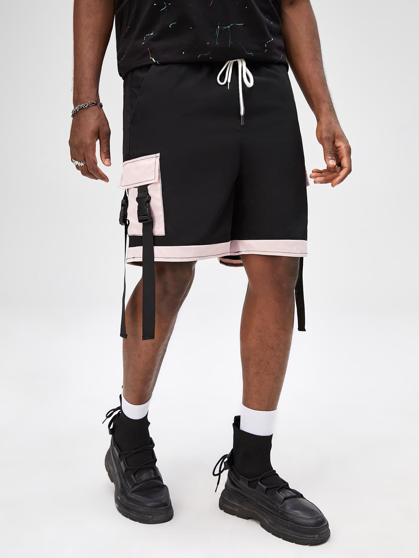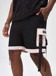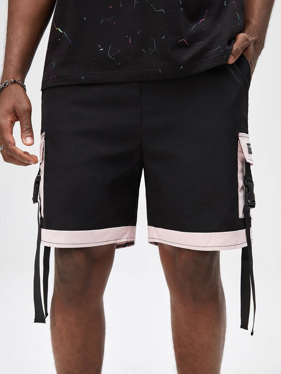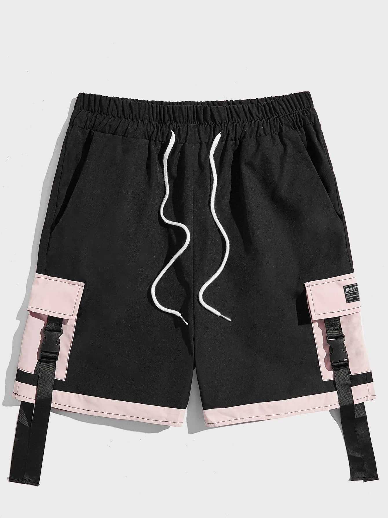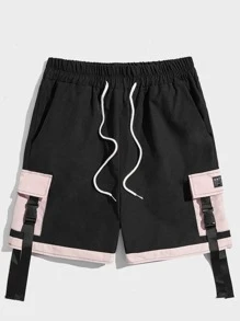 Hombres Shorts con diseño con hebilla con bolsillo con solapa de cintura con cordón cargo