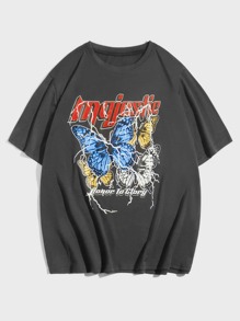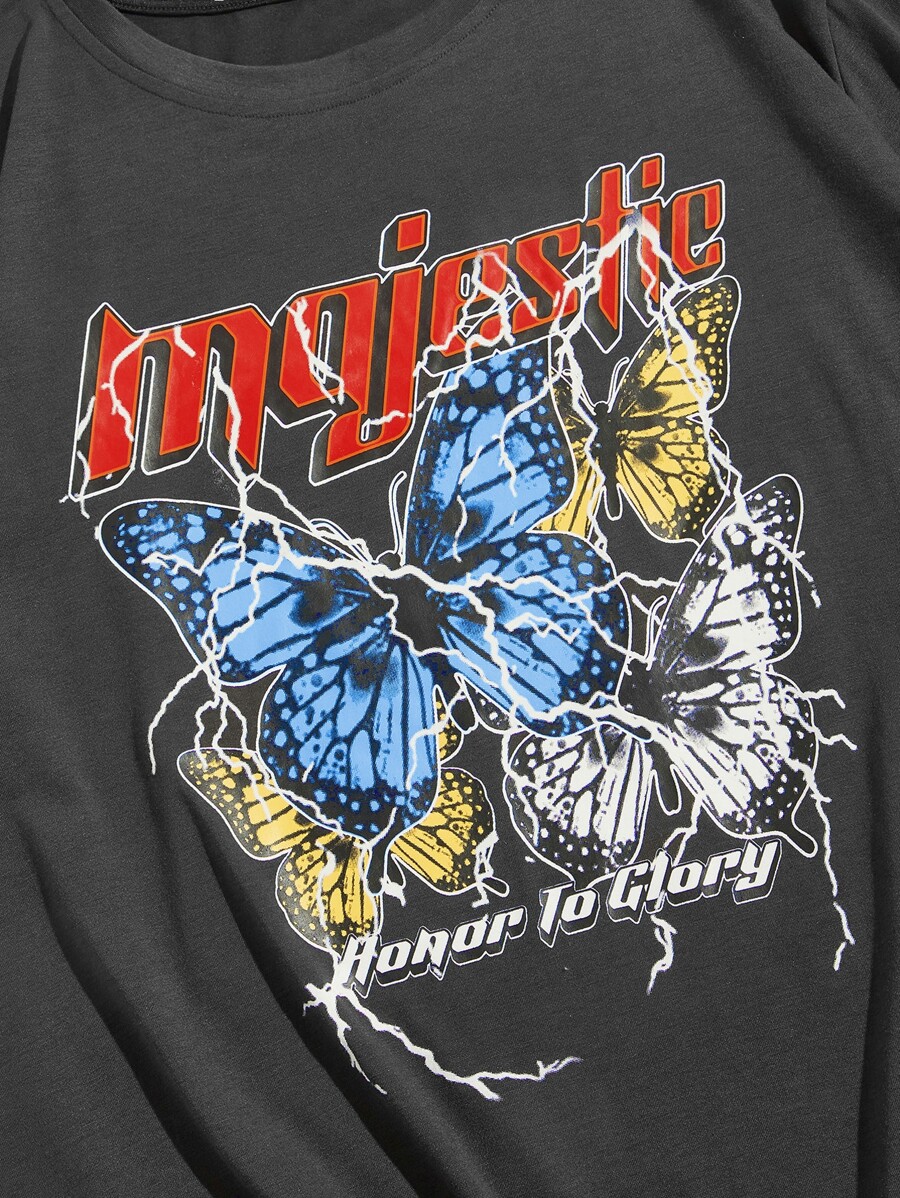 Street Life Hombres Camiseta con estampado de mariposa y slogan
