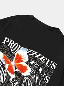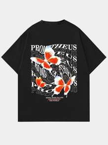 Hombres Camiseta con mariposa con estampado de letra