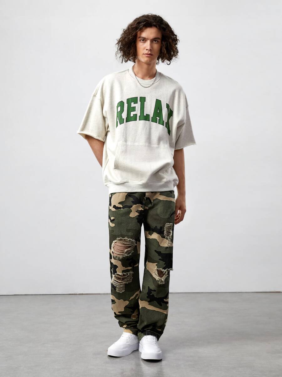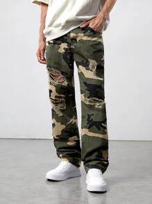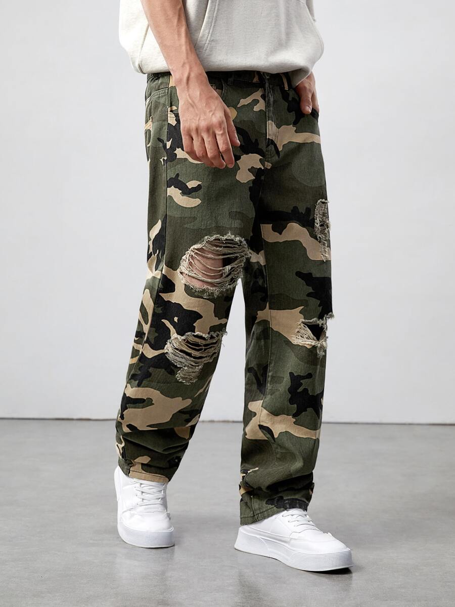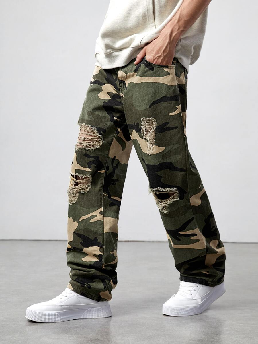 Jeans Rotos Con Estampado Camuflaje Para Hombres