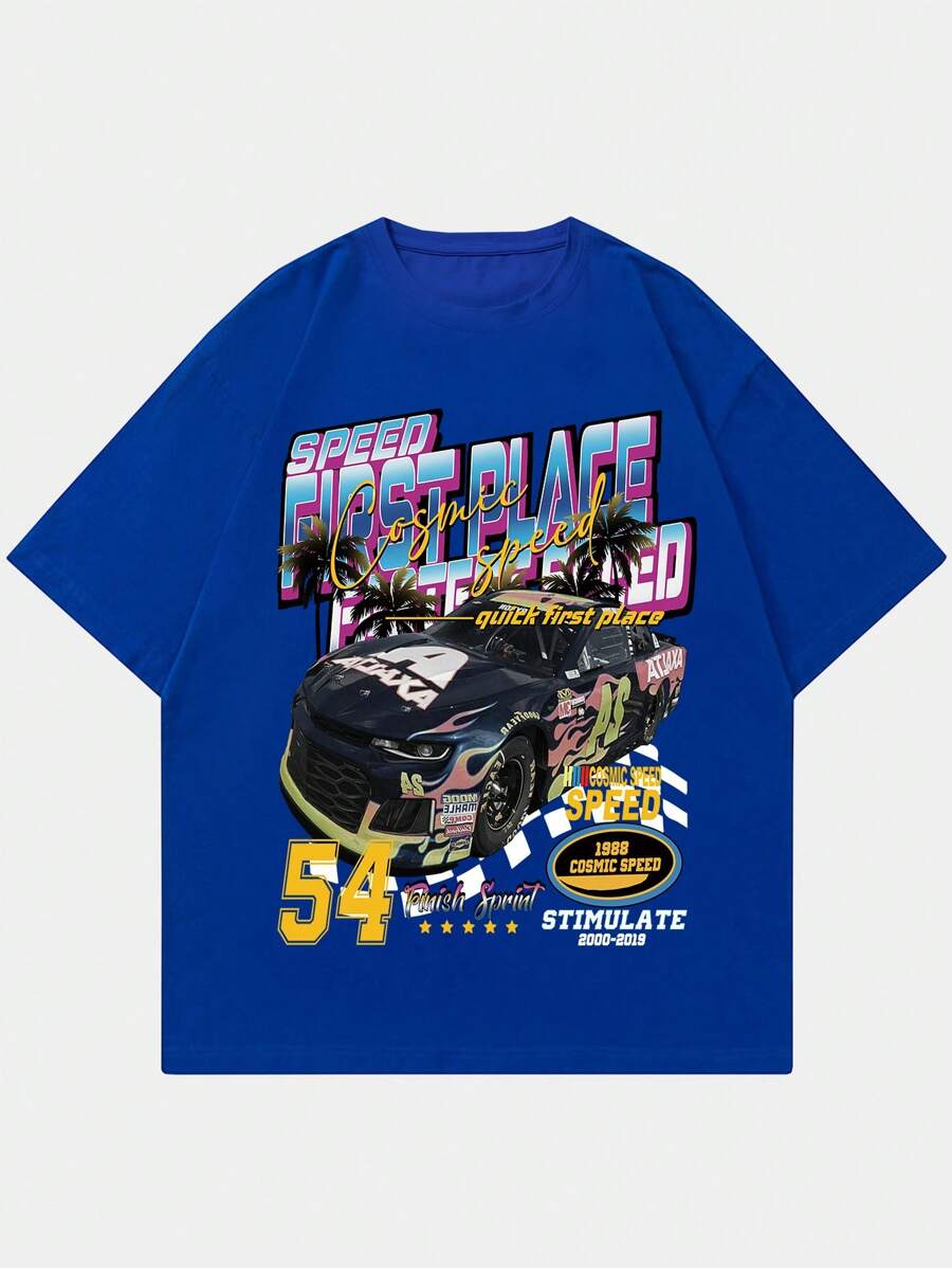 Camiseta De Hombro Caído Para Hombre Con Gráficos De Coche Y Letras