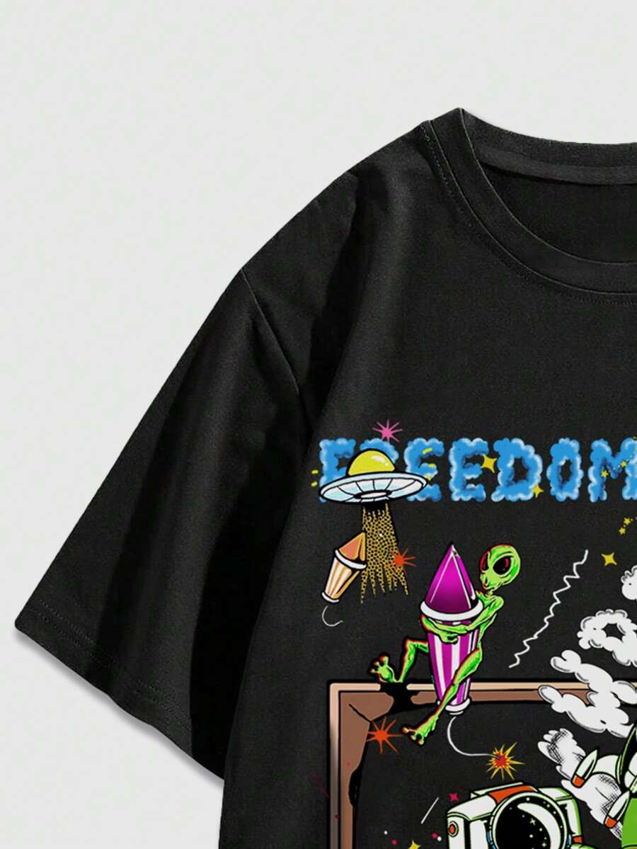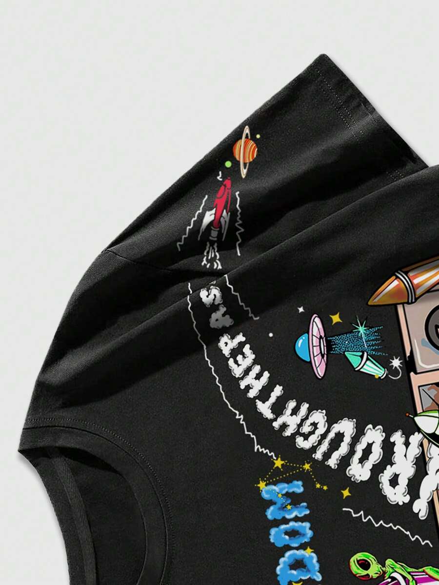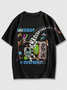 Street Life Hombres Camiseta con estampado de dibujos animados y letra