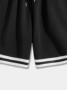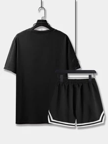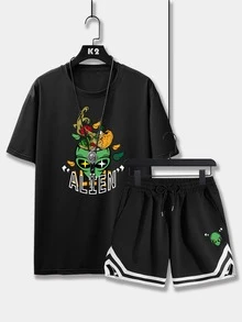Hombres con estampado de dibujos animados Camiseta & ribete de rayas Shorts