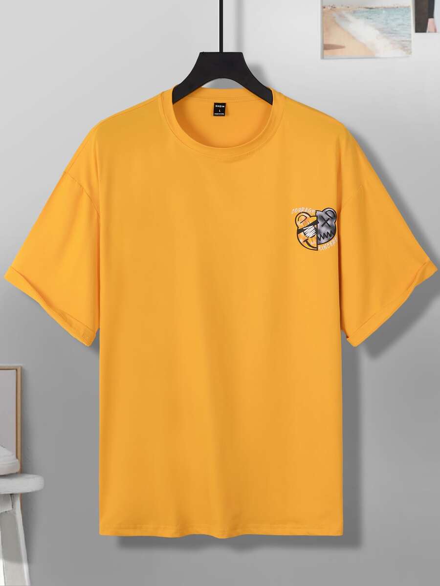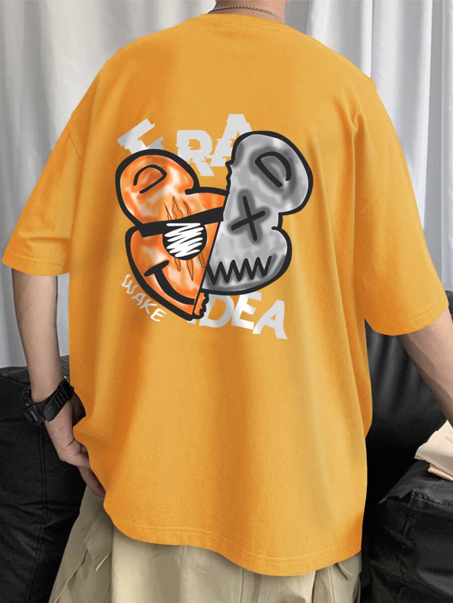 Hombres Camiseta de hombros caídos con estampado de dibujos animados y letra