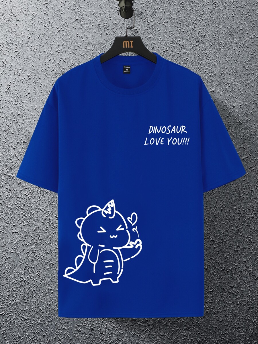 Camiseta holgada para hombre con gráfico de caricatura y eslogan, manga caída