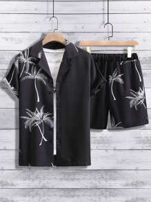 Hombres con estampado de árbol de coco Camisa & Shorts sin camiseta