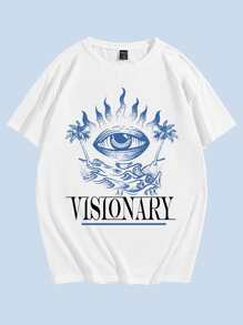 Hombres Camiseta algodón con estampado letra & ojo
