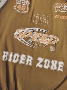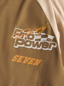 Hombres Camiseta algodón con estampado de letra de manga raglán