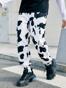 Hombres Pantalones cargo con estampado de vaca con bolsillo con solapa