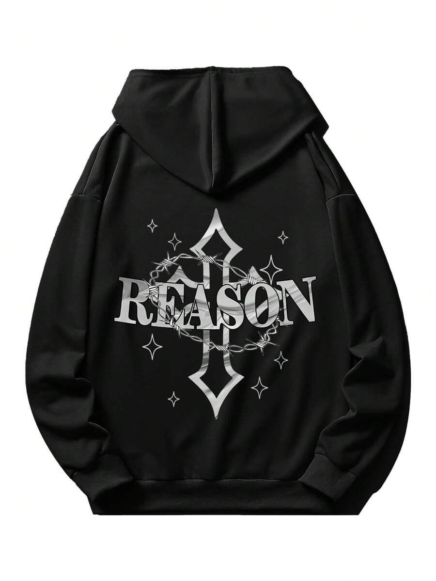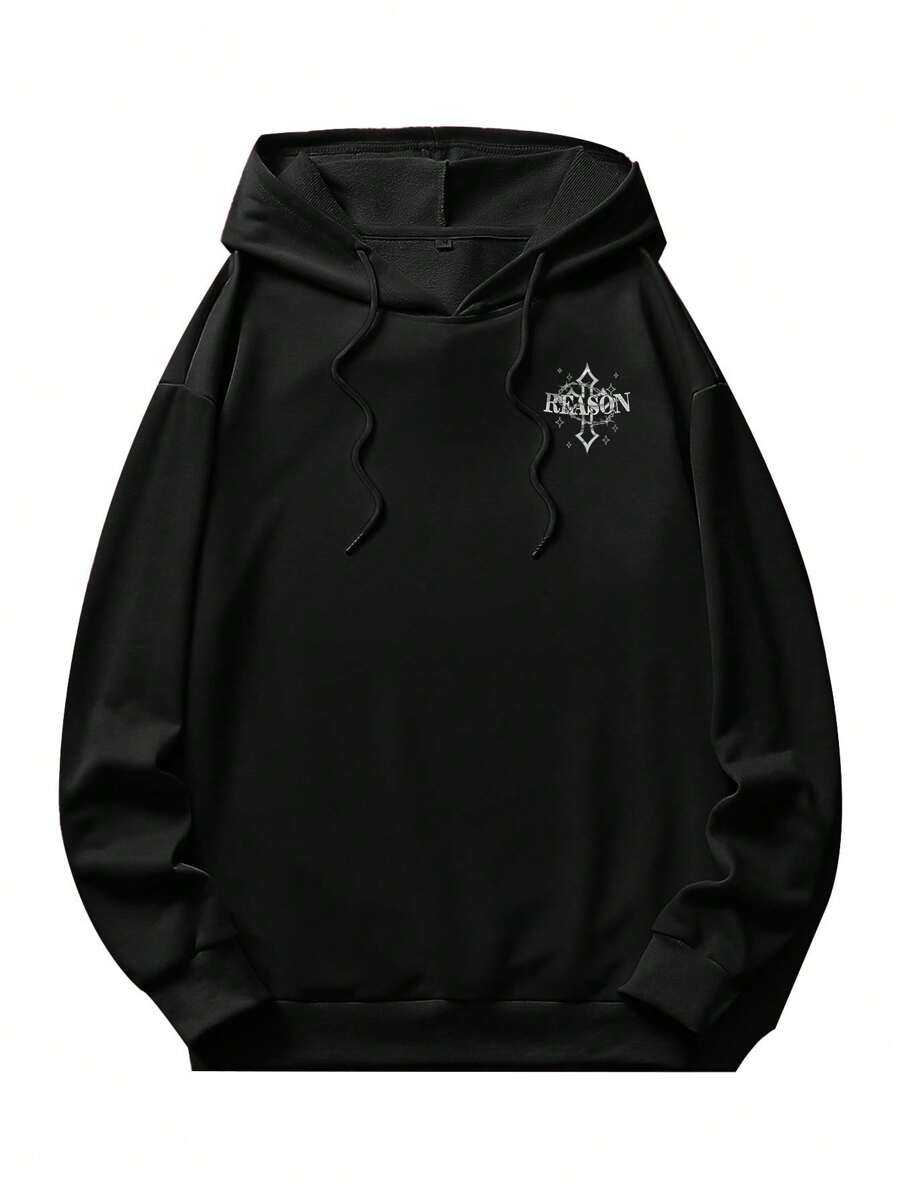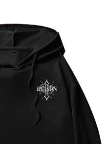 Goth Sudadera Con Capucha Térmica Para Hombre Con Diseño De Cruz Y Letra Con Hombros Caídos