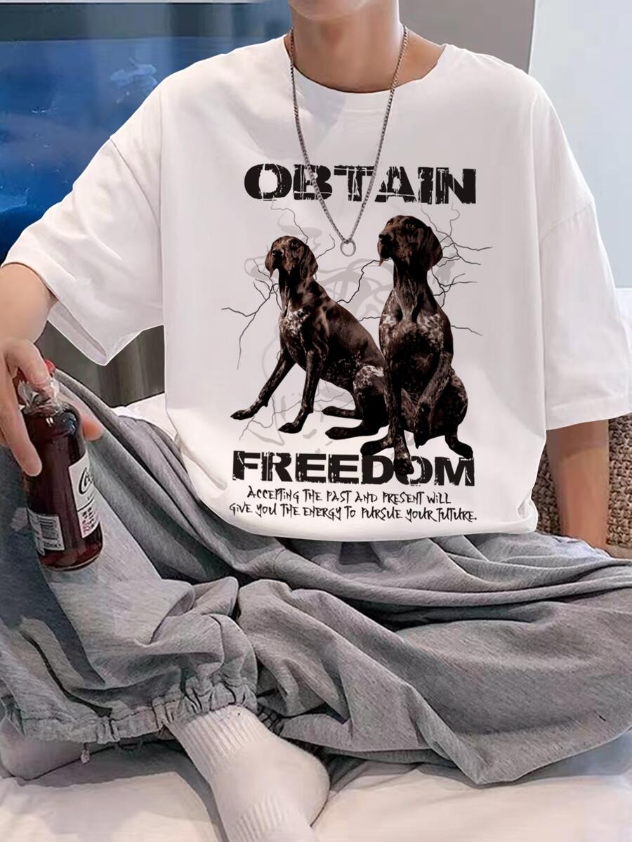 Hombres Camiseta con estampado de perro y slogan