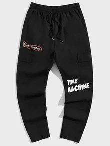 Hombres Pantalones cargo de cintura con cordón con estampado de letra