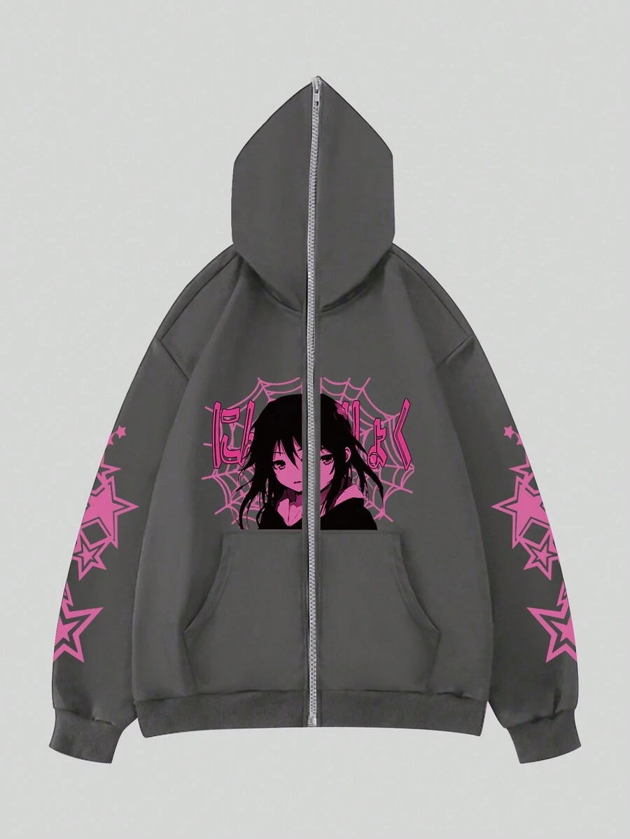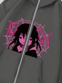 Anime Hombres Capucha con cremallera con estampado de figura y letra
