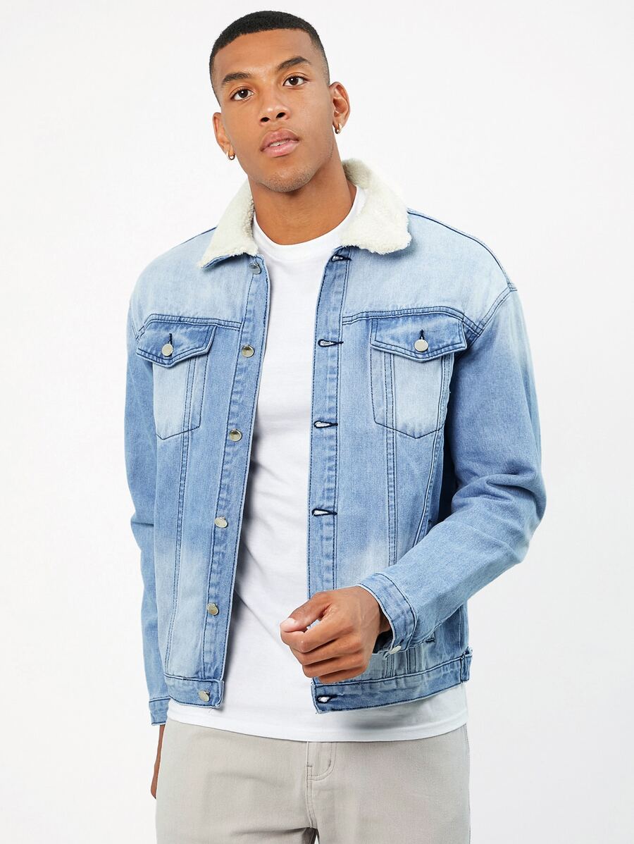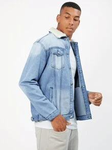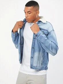 Hombres Cazadora mezclilla con diseño de solapa cuello de borreguito