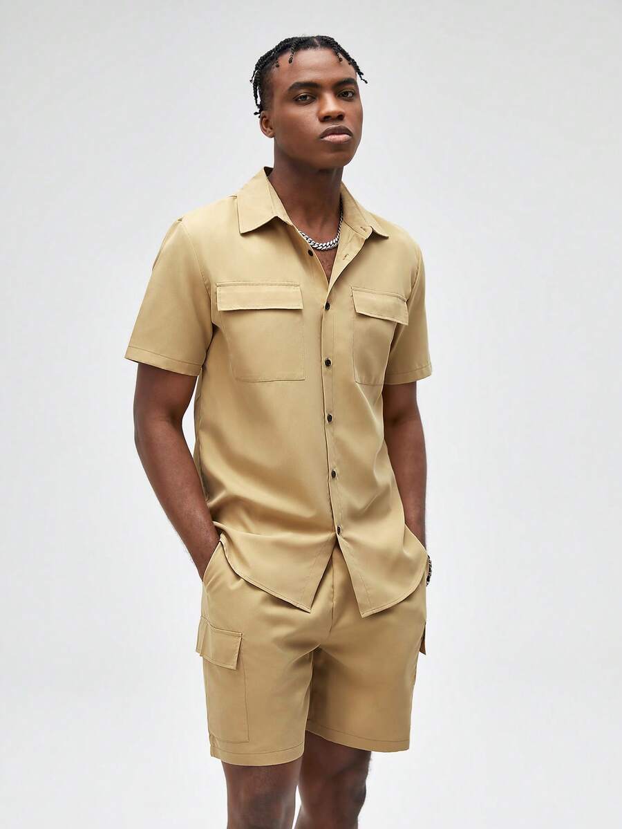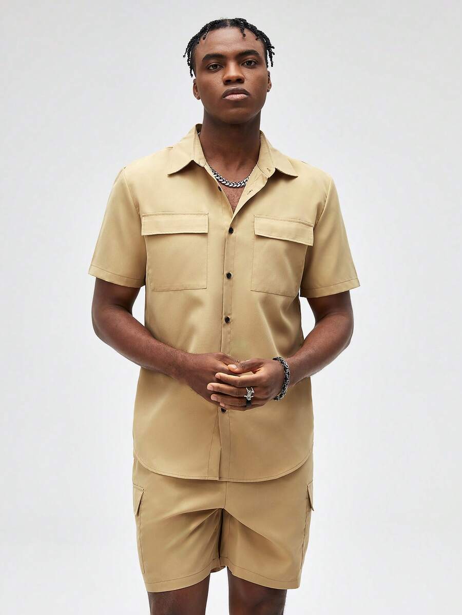 Street Life Hombres con bolsillo con solapa Camisa & de cintura con cordón Shorts