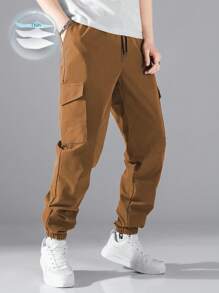Pantalones de carga para hombres con bolsillo con solapa y cordón elástico en la cintura