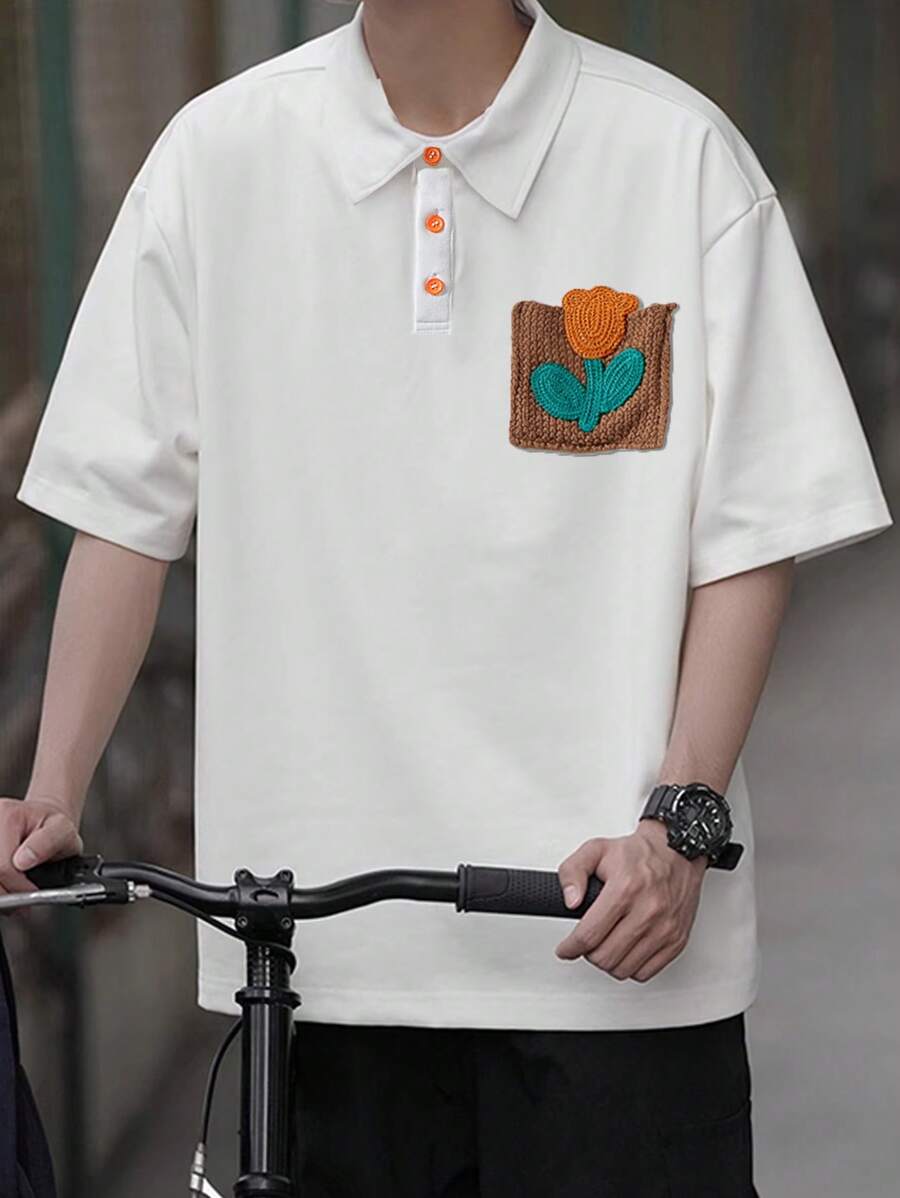 Polo Holgado Con Estampado Floral Y Parche De Bolsillo Para Hombre