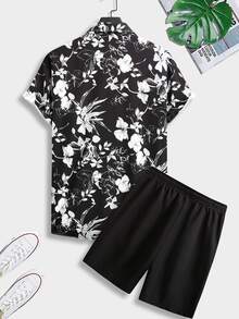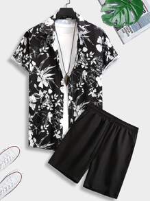 Hombres Camisa con estampado floral & Shorts sin camiseta