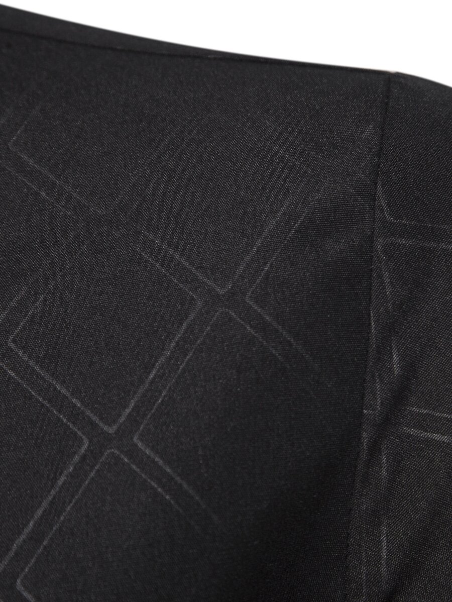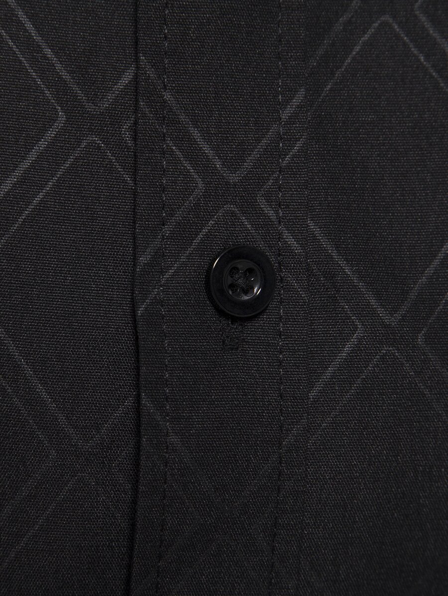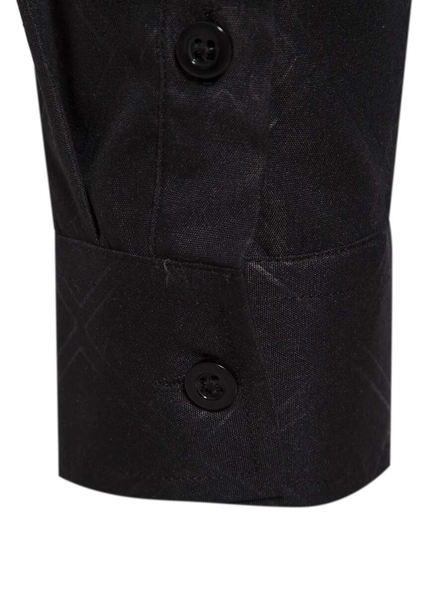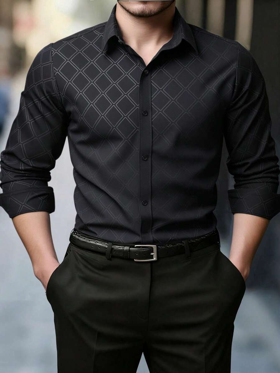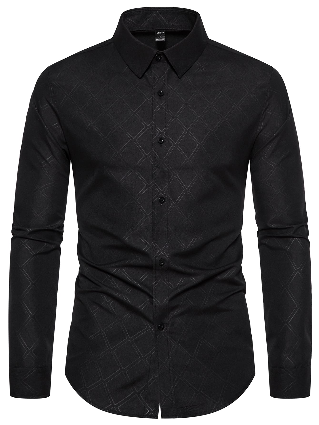 Camisa casual de manga larga con cuello, estampado geométrico liso para hombre, para trabajo, negocios, camisa texturizada negra, otoño