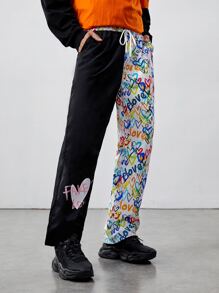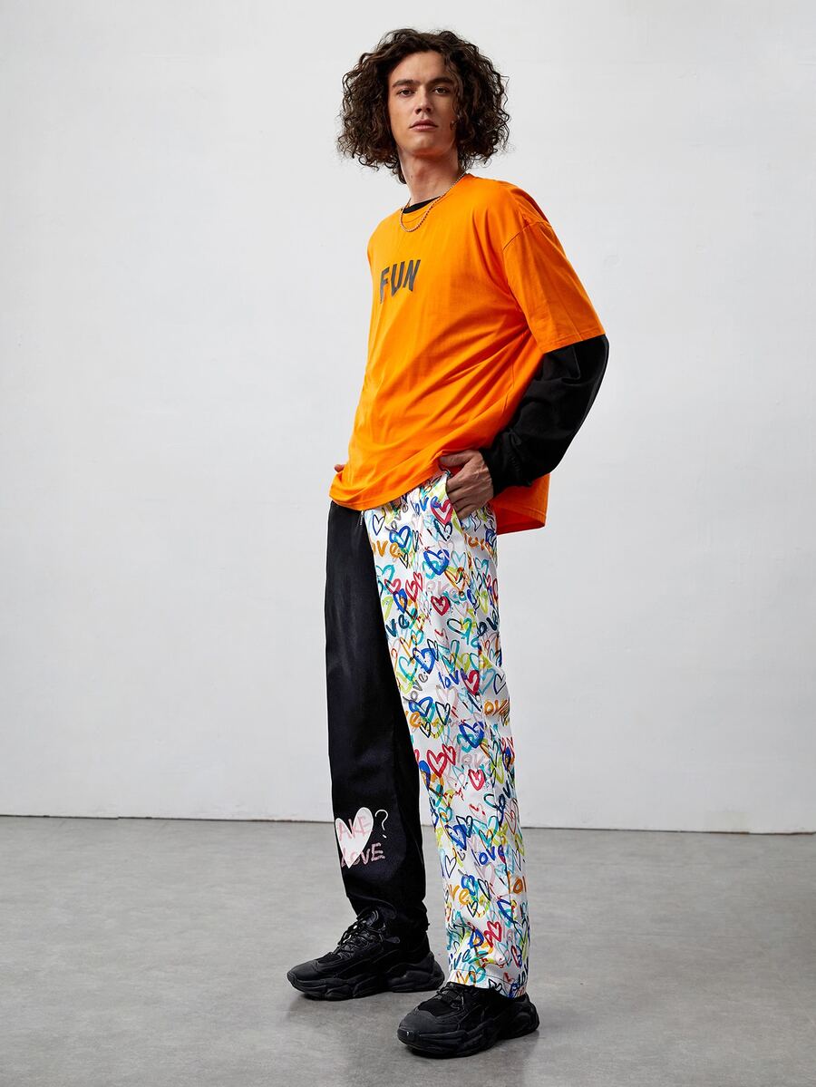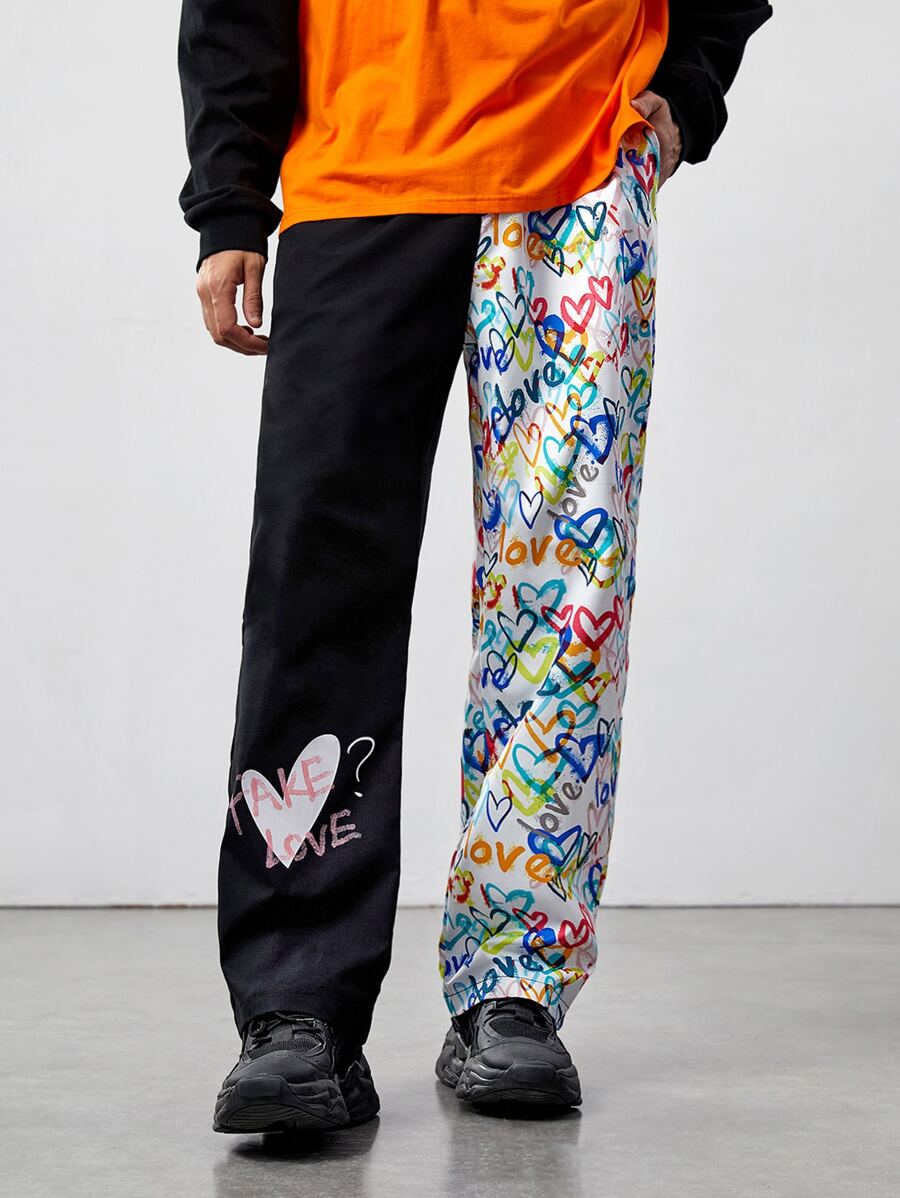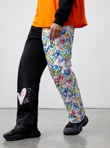 Hombres Pantalones con estampado de corazón con bolsillo oblicuo