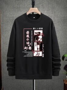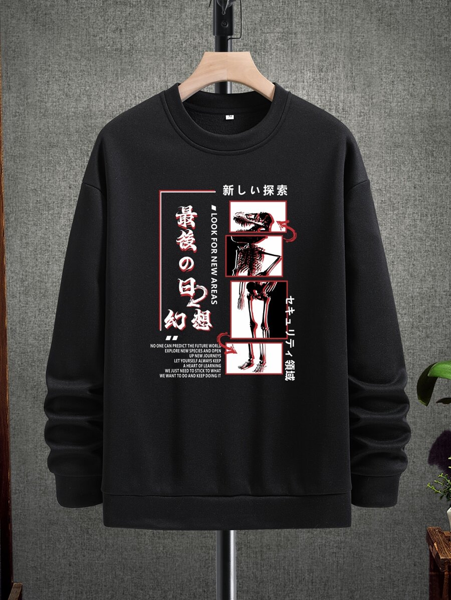 Hombres Pullover térmico con estampado de letra japonesa & esqueleto