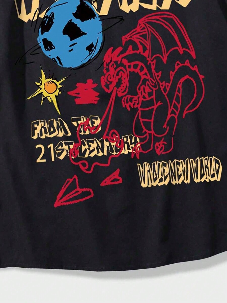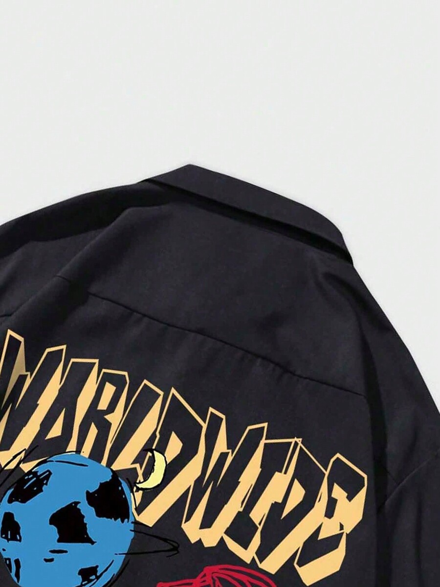 Street Life Hombres Camisa con letra con estampado de dibujos animados con botón delantero