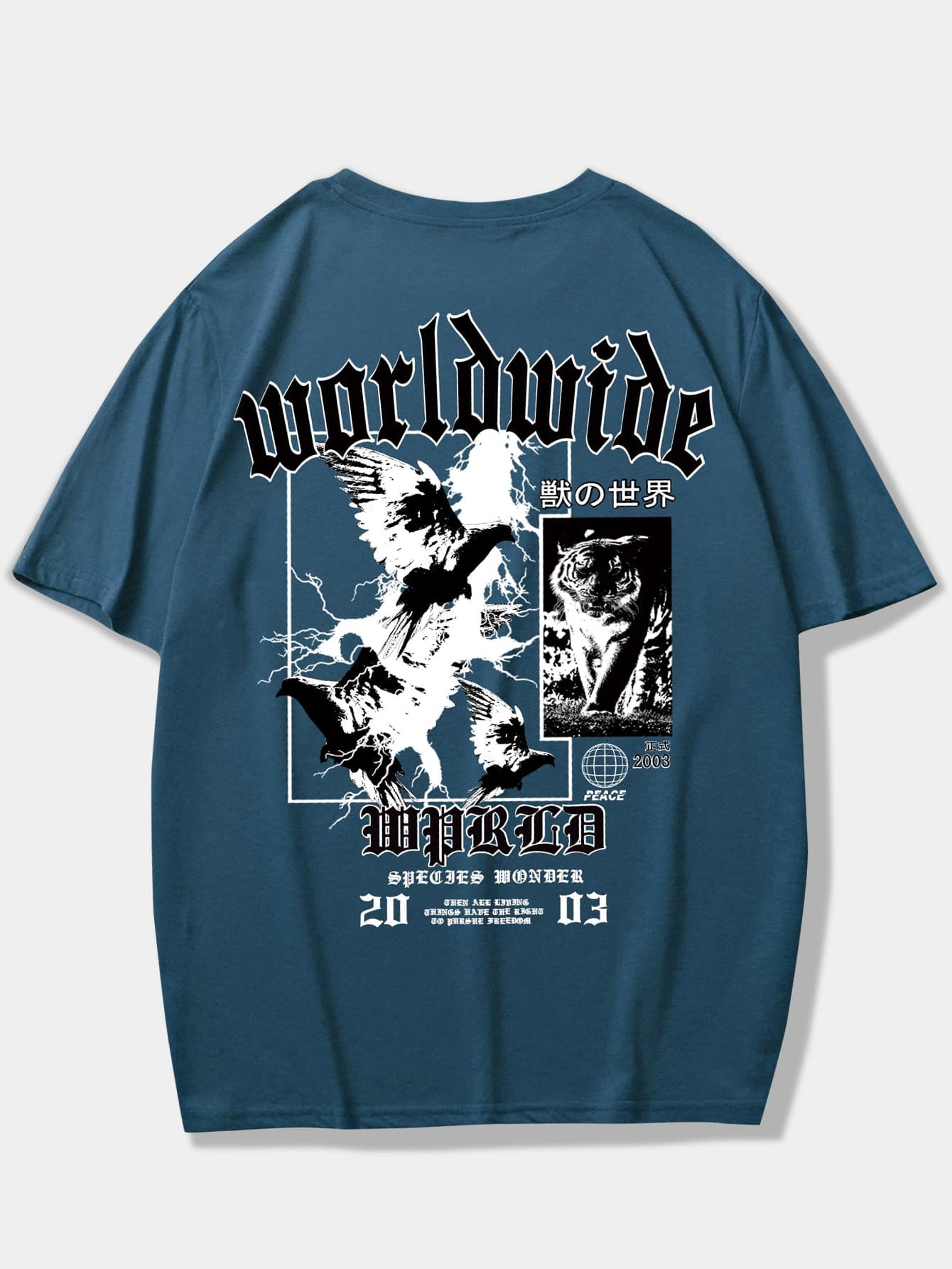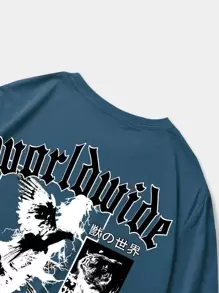Goth Hombres Camiseta con letra con águila & con estampado de tigre