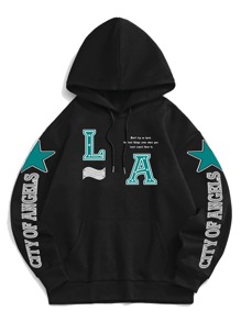 Hombres Capucha con estampado de letra con cordón con forro térmico