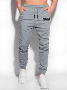 Hombres Pantalones con estampado de letra de cintura con cordón