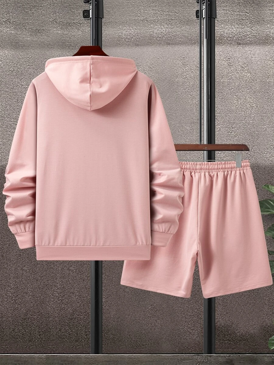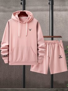 Hombres Shorts con capucha con estampado de letra con bolsillo de canguro con cordón