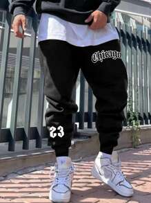 Pantalones de chándal holgados con bolsillos en diagonal y estampado gráfico de letras, pantalones de chándal casuales con cordón para hombre, regalo para esposo o novio
