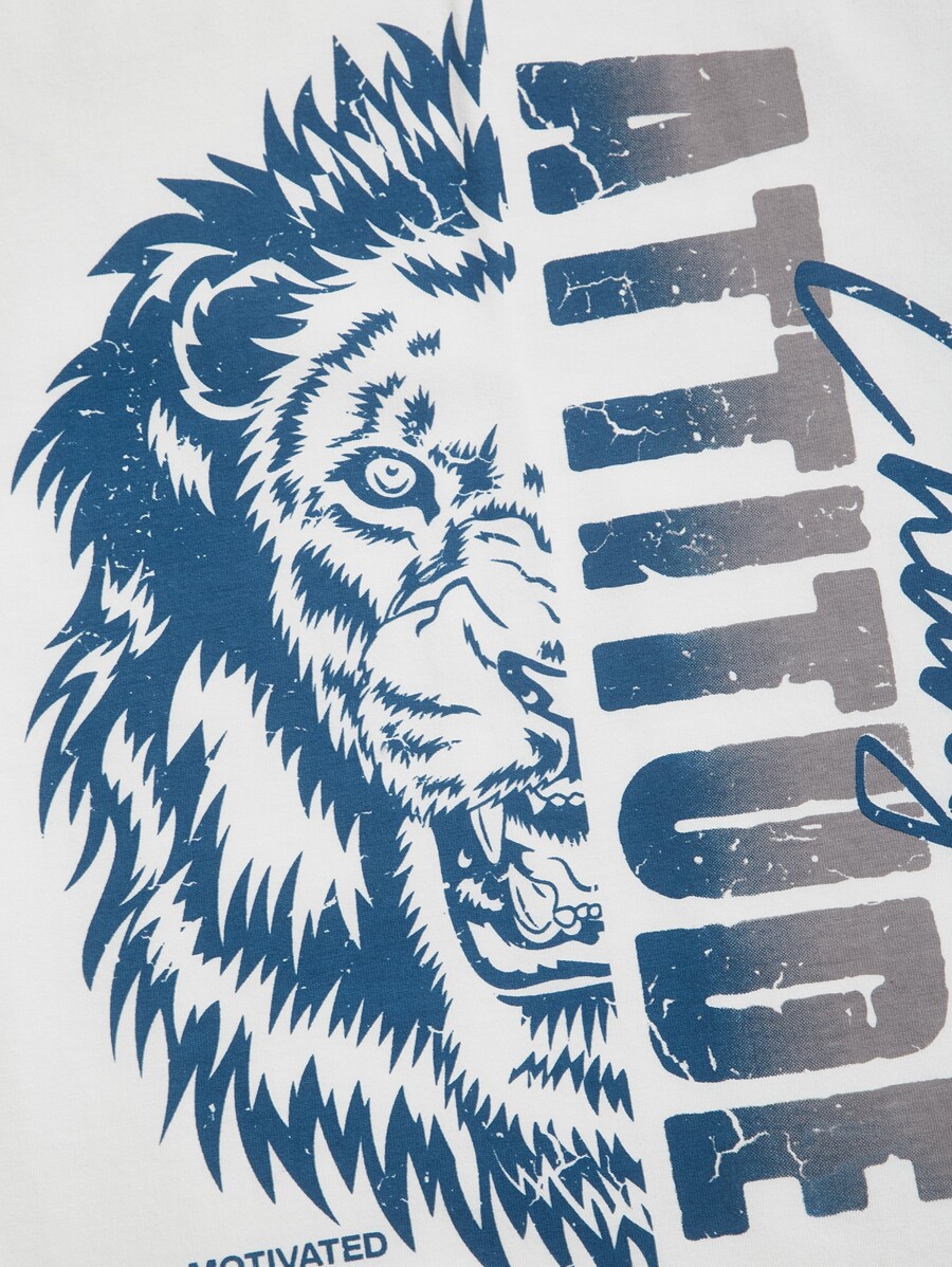 Conjunto de camiseta de manga corta con gráfico de letra y león de algodón para hombre + pantalones con cordón en la cintura, conjunto de salida de verano, atuendos cómodos