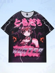 Anime Hombres Camiseta rayo con estampado de figura y letra