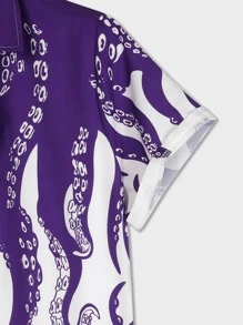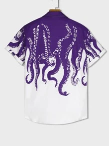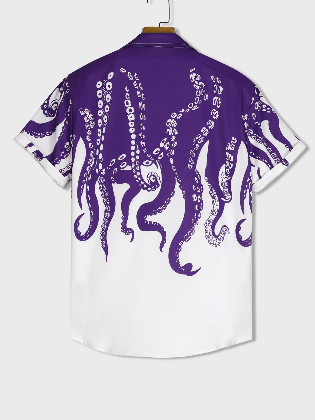 Street Life Hombres Camisa de pulpo con estampado de mano