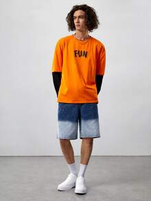 Shorts De Mezclilla Para Hombre Pintados Con Salpicaduras Degradadas