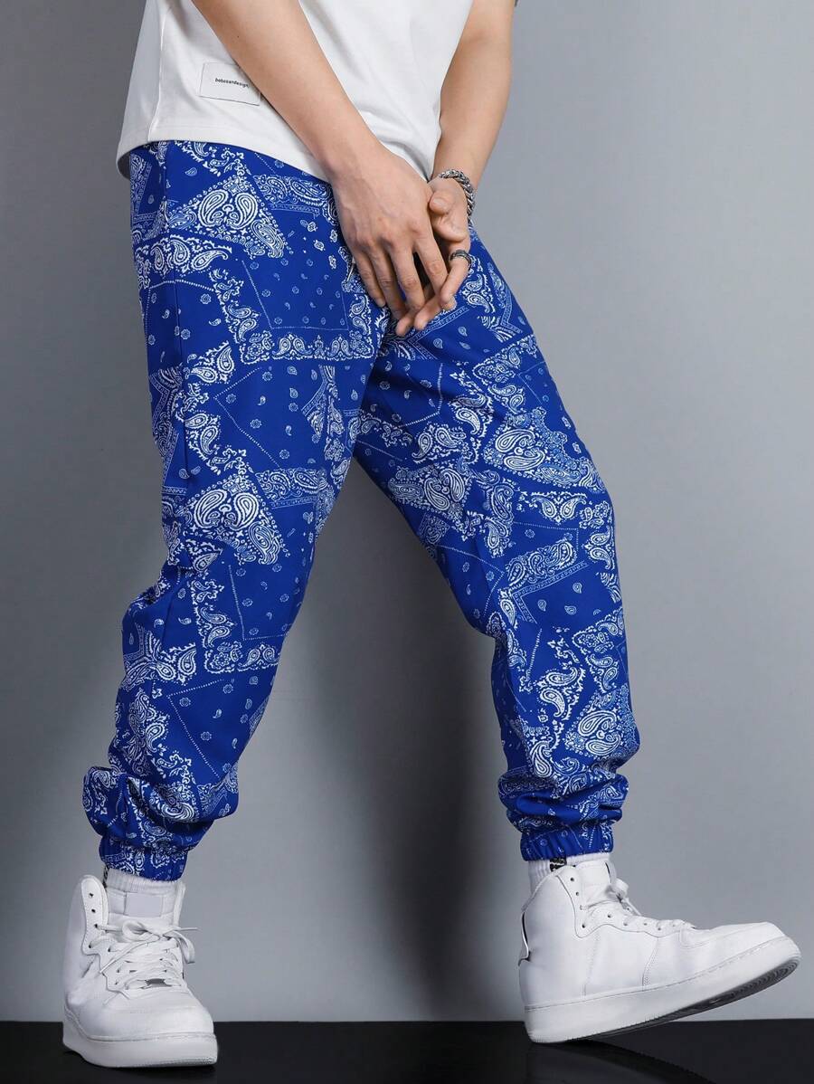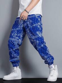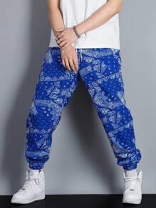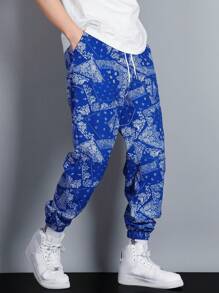 Hombres Pantalones con estampado de pañuelo con paisley de cintura con cordón