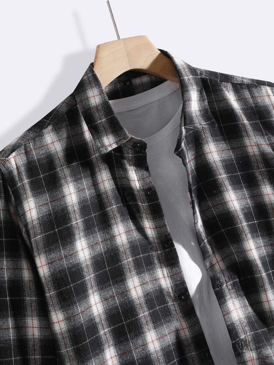 Hombres Camisa de cuadros con botón sin camiseta