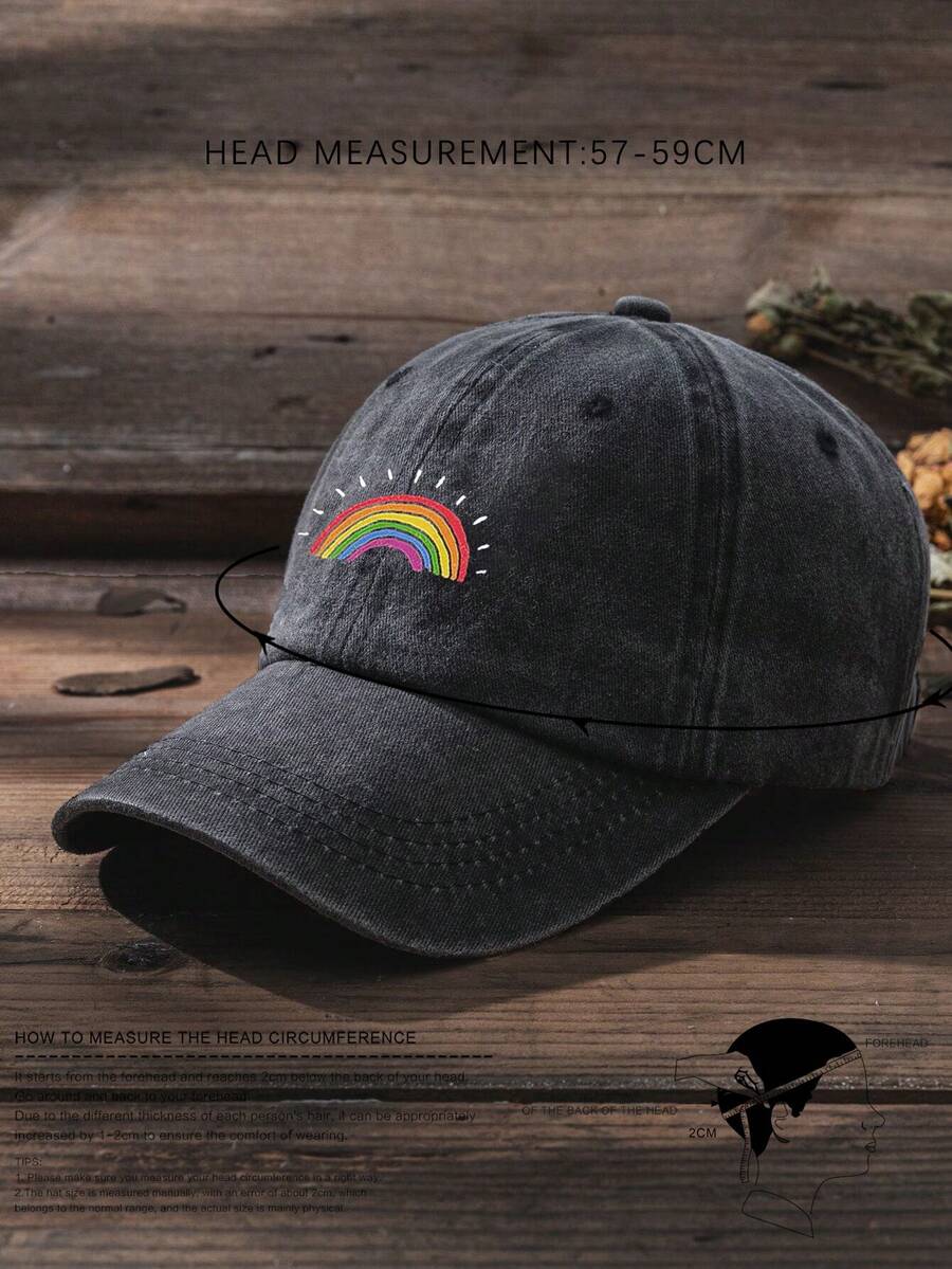 1 pieza Gorra de béisbol con estampado arcoíris estilo Y2K lavada, unisex, sombrero de punto para exteriores, casual y versátil, adecuado para el transporte diario en invierno