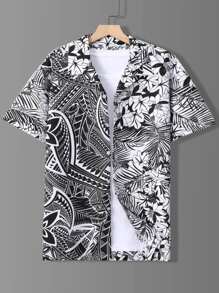 Hombres Camisa floral al azar con con estampado geométrico sin camiseta