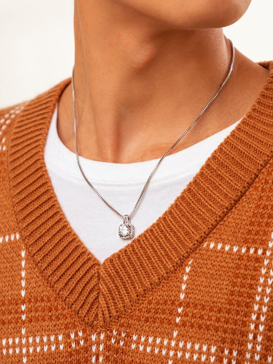 Hombres Collar con accesorio con diamante de imitación cuadrado